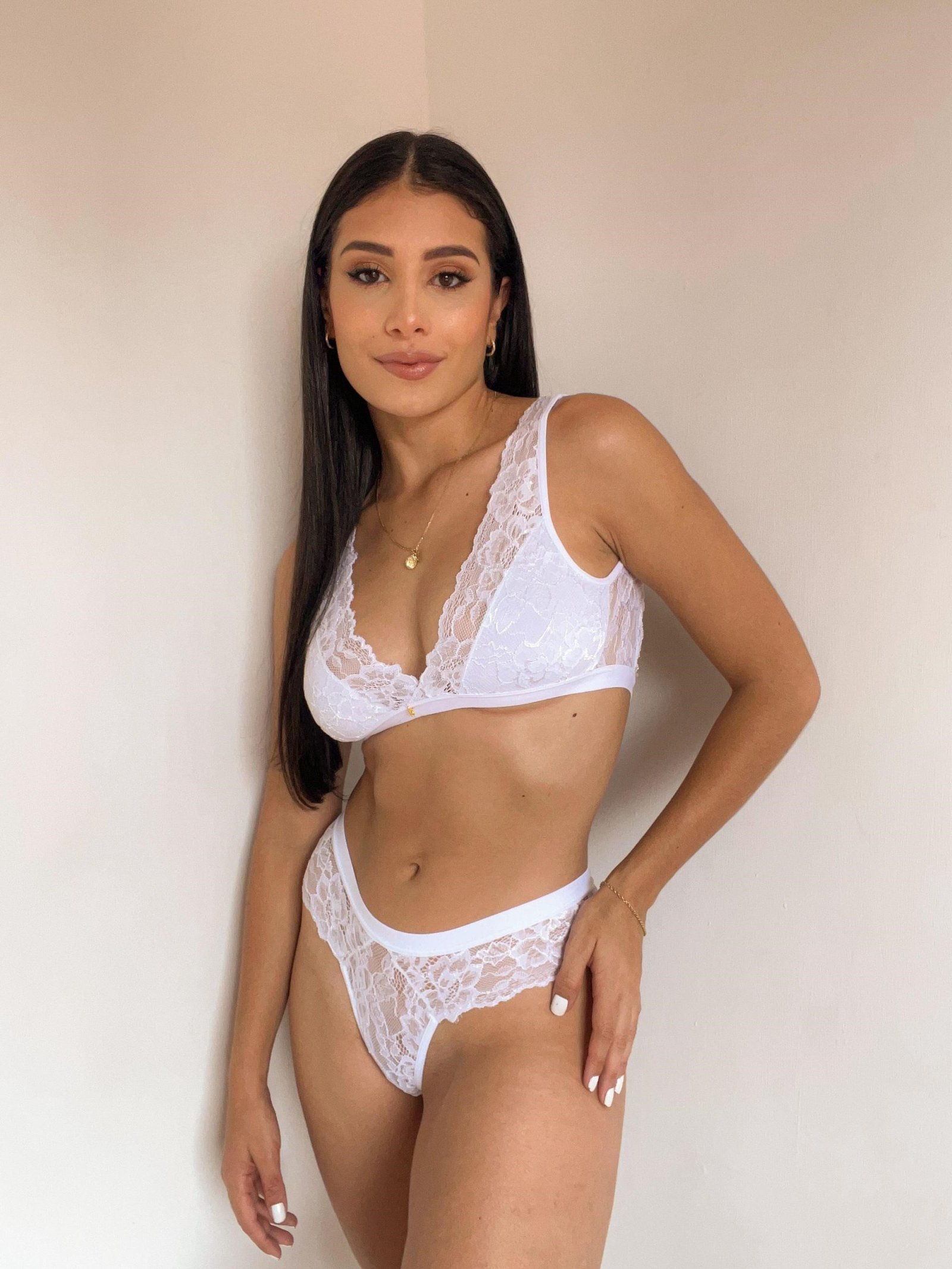 Este set blanco en encaje es la definición de frescura, sensualidad y elegancia. Su diseño suave y delicado resalta la feminidad con un toque romántico, mientras el top brinda comodidad sin perder estilo. Ideal para sentirte segura, ligera y absolutamente irresistible. ¡Un set que deslumbra!
